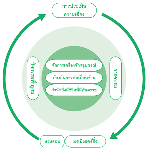 จัดทำและดำเนินการโปรแกรมกำจัดสิ่งมีชีวิตที่มีอันตราย (แมลง, หนู, เชื้อจุลินทรีย์ เป็นต้น)